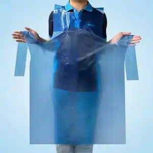• Disposable apron HDPE : Crafted from high-density polyethylene (HDPE), ensuring robust protection against spills and stains during use.