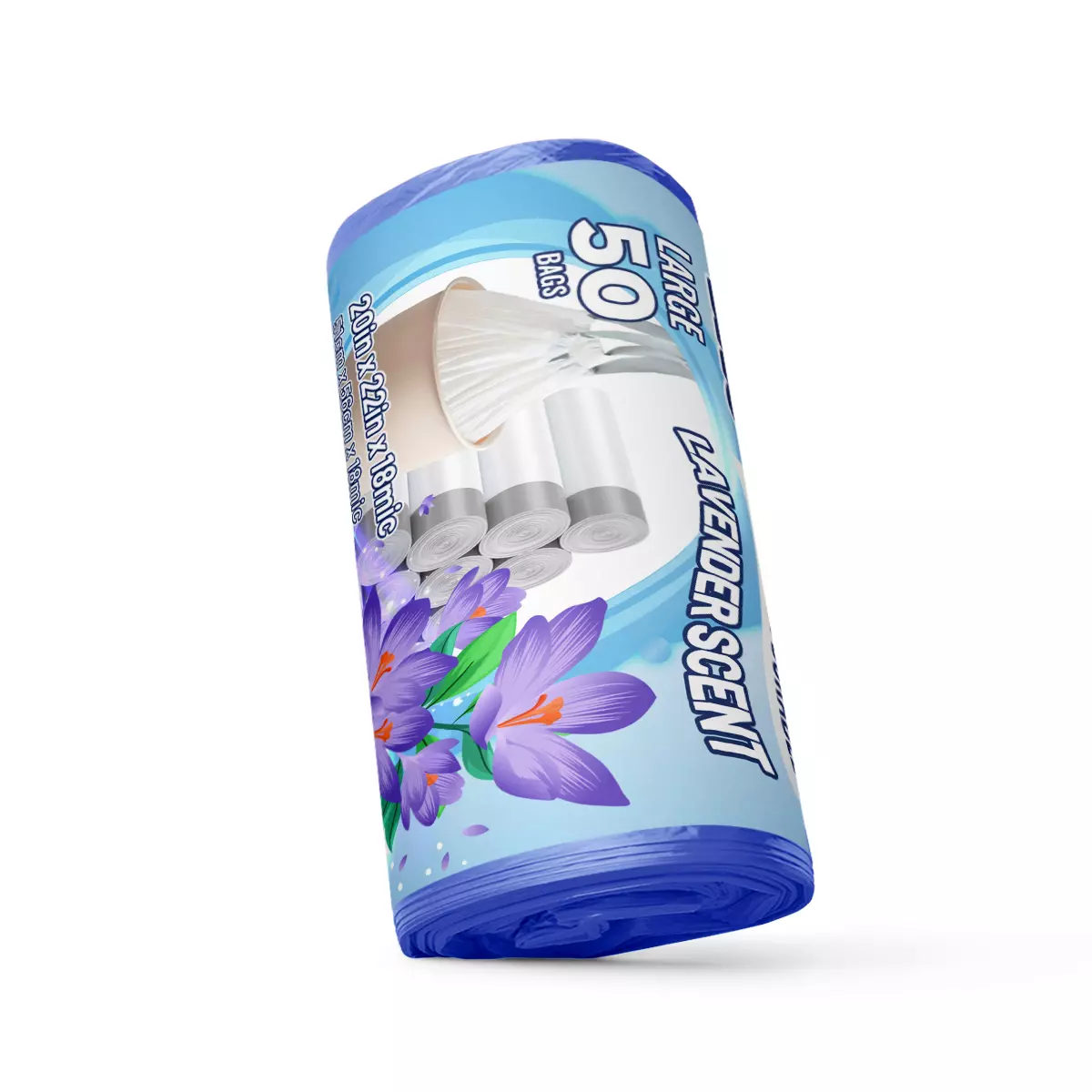 Drawstring Trash Bags on roll with SCENT, Size L, 50.8cm x 56cm x 18mic, 50 pcs/roll