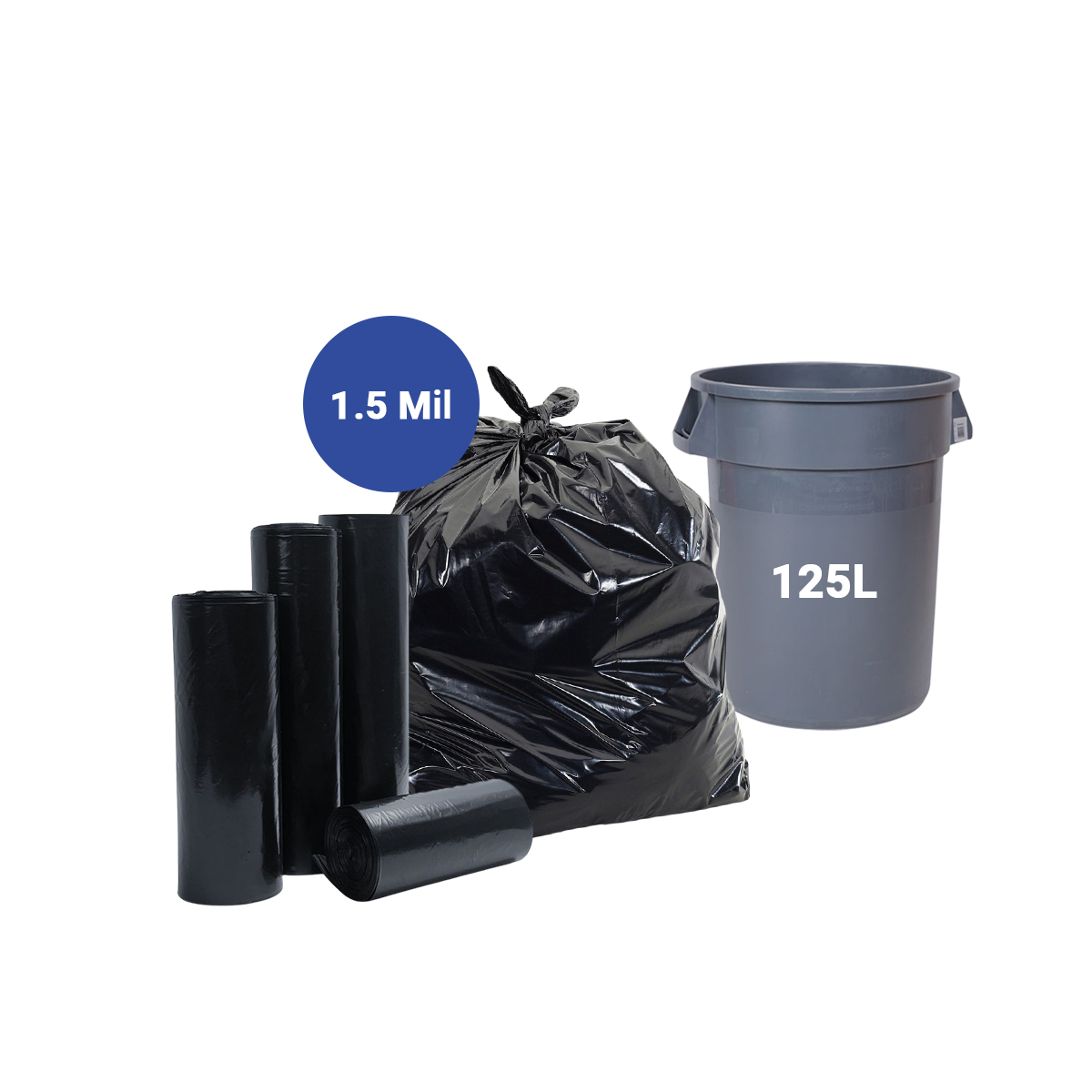 LD Trash Bags, LLDPE Plastic, Black, 125L, 83.8cm x 99cm x 1.5mil, 20 pcs/roll
