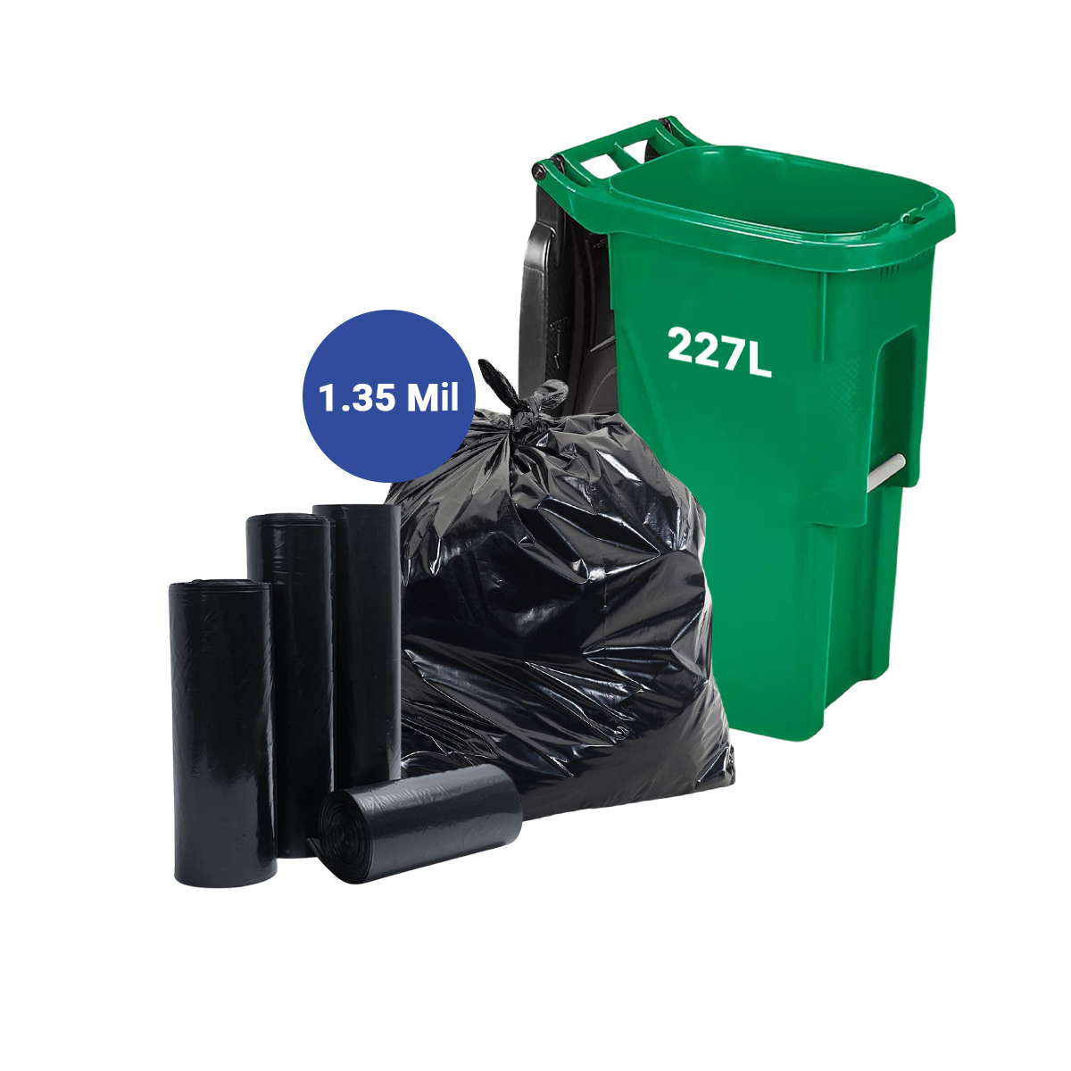 LD Trash Bags, LLDPE Plastic, Black, 227L, 96.5cm x 147cm x 1.35mil, 10 pcs/roll