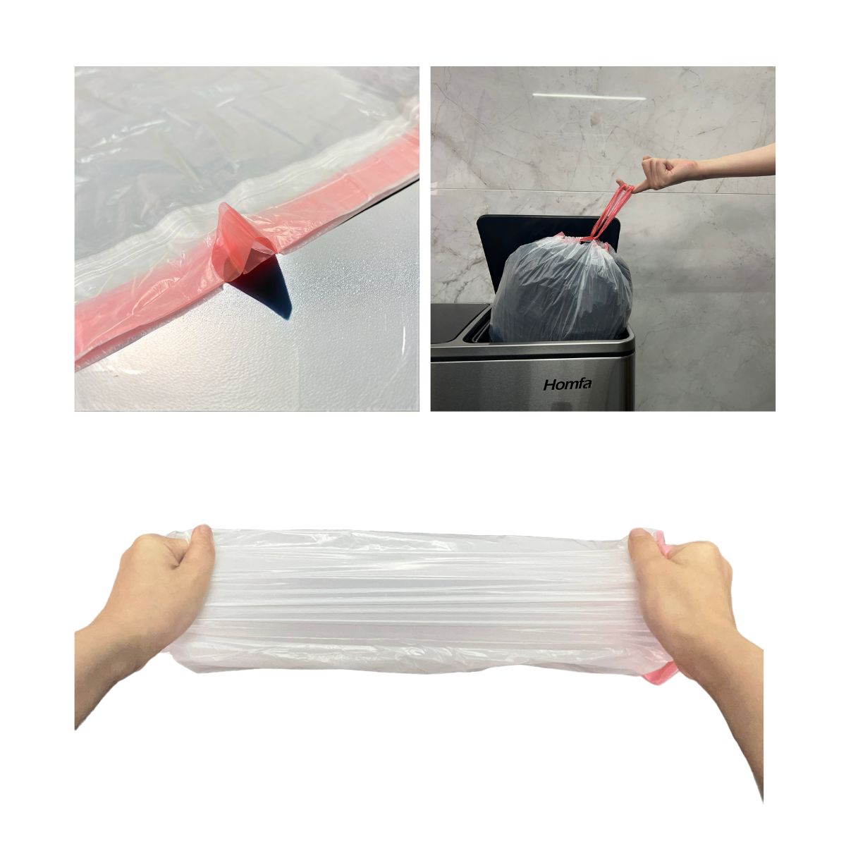 Say goodbye to unpleasant odors lingering in your space. Our drawstring trash bags come with advanced odor control technology. The material is designed to seal in odors, preventing unpleasant smells from escaping and permeating your surroundings. Enjoy a fresher, more pleasant environment without compromising on capacity or functionality.