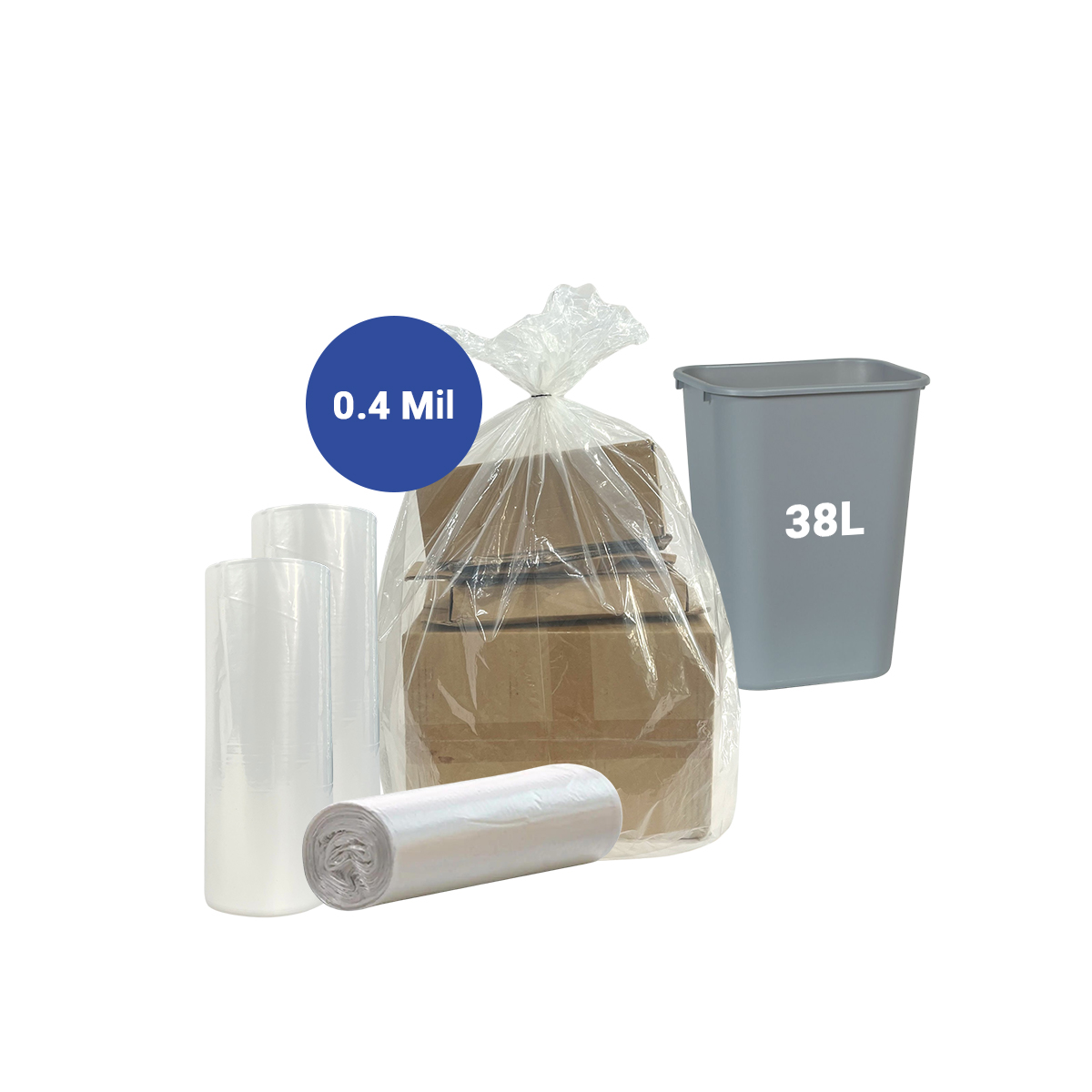Wase Top Trash Bags, HDPE Plastic, Clear, 38L, 61cm x 61cm x 0.4mil, 50 pcs/roll